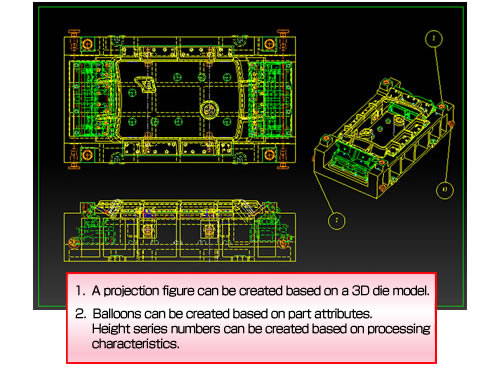 This tool enables a creation of 2D drawings based on the data of 3D die model.