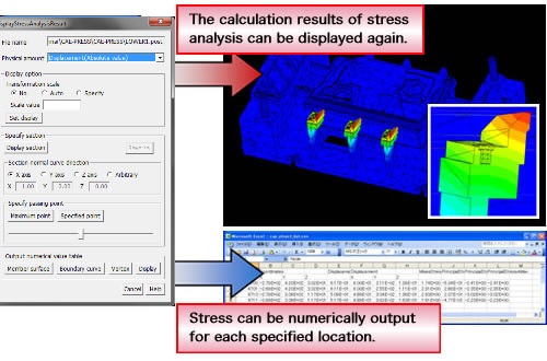 It is possible to display and output quickly the results that have been saved after the execution of the command for stress analysis.