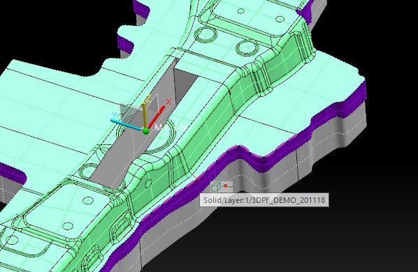 The shaded solid (Note 1) is temporarily displayed semi-transparently, making it possible to select the elements inside the solid.