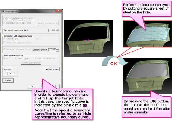 This command enables holes to be filled up through simple sophisticated operations of taking into considerations characteristics of materials.