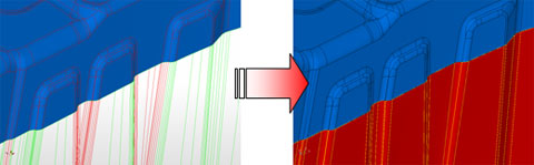 Provided that a surface subject to deformation consists of STL data, even if the calculated torsion magnitude is insufficient, this command can dynamically and automatically fill in the missing area of STL data, and thus enables the creation of natural torsion over the entire original surface.