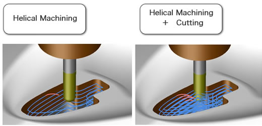 - The efficiency of machining is improved if helical machining is operated in combination with cutting in the tool diameter direction.