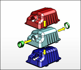Split patterns of a mold model can be visually and quickly understood. The capability of 'Simple Split' is a strong support for reviewing designs and considering parting lines.