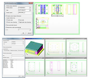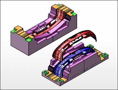 MOLD CREATOR, a strong support for 3D mold design, can be used for all phases of mold design: consideration of formability, nesting design, detailed design, creation of drawing, and creation of data for order placement.