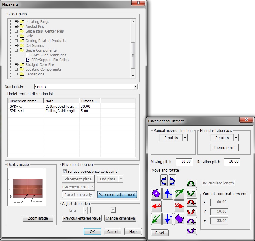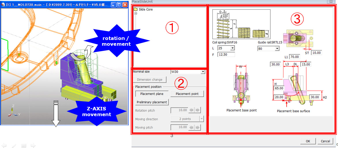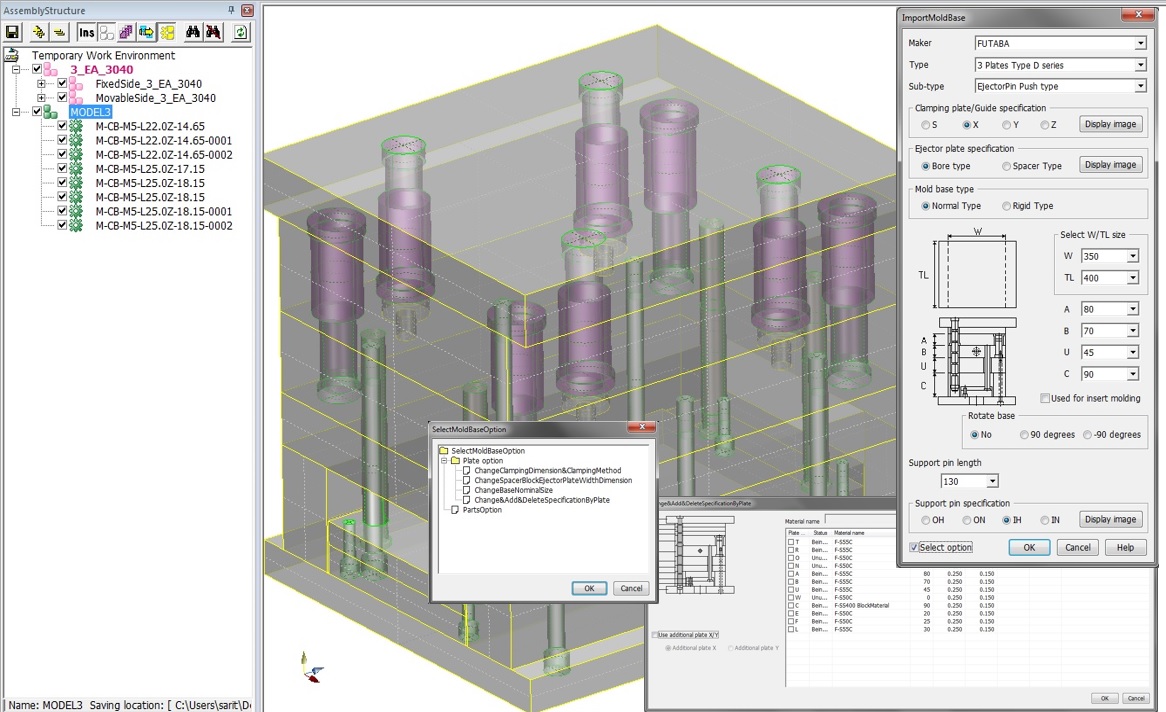 Constituent parts necessary for designing a 3D mold can be easily registered through operations assisted by Wizard. A set of parts as well as individual parts can be easily registered likewise.