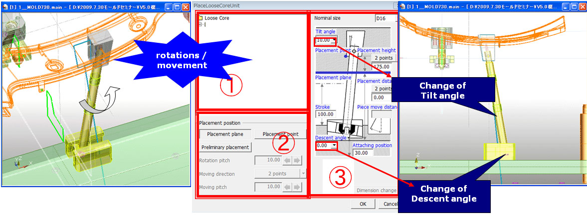 The individual dimensions of a Tilting Core Unit can be changed by directly specifying in the dialogue box as shown below. Sizes and positions can be adjusted by a function of temporary assignment.