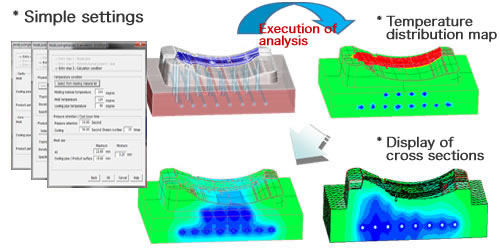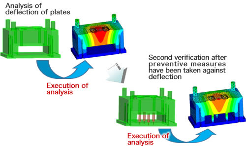 CAE-MOLD supports designers by reducing design lead time and improving mold qualities, due to the capabilities of mold cooling analysis and mold deflection analysis.