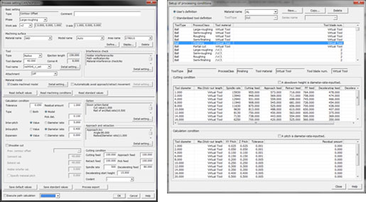 Also, cutting conditions (expressed in the form of parameters) that correspond to the cutting materials and cutting tools can be saved as control values or result values during the phases of machining.