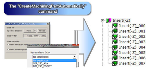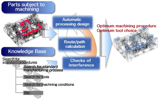 Furthermore, the capability of optimizing the processing sequence enables users to rearrange the NC (numerical control) output sequence pursuant to specified rules (about processing sequences and replacement of tools).