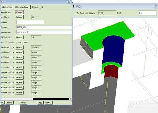 Also, drawings can be checked by executing the commands of interference test and die structure verification. Furthermore, CAM system can be coordinated through the use of machining features.