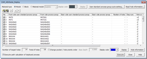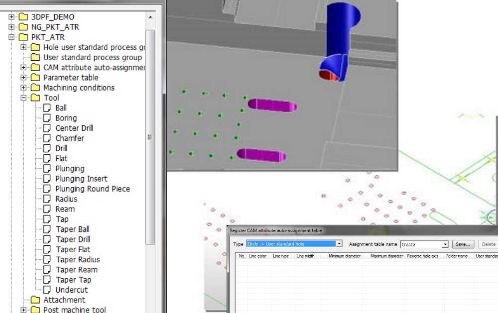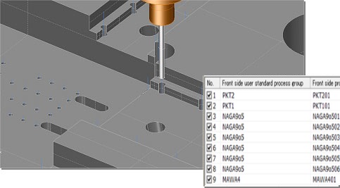 CAM-ATTRIBUTE automatically creates and standardizes machining data on the basis of the assigned 2D/3D machining data and geometric information for holing.