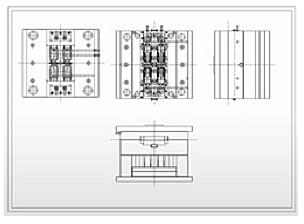 It is possible to create drawings of 6 perspectives, arrow views, drawings of elements on a large scale, and drawings of cross sections (full sectional views and views of step-formed sections) on the basis of the constituent parts of 3D mold model.