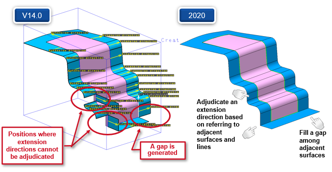 We have enhanced the functions to deal with Corner Parts and adjacency between (adjacent) surfaces.