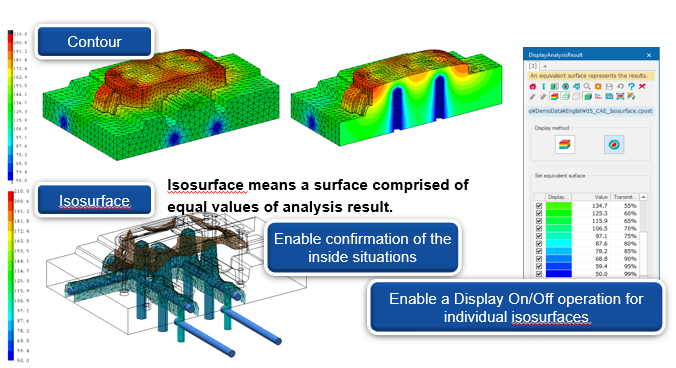 We have enhanced the “DisplayAnalysisResult” command to display CAE analysis results. The command window can now display isosurfaces.