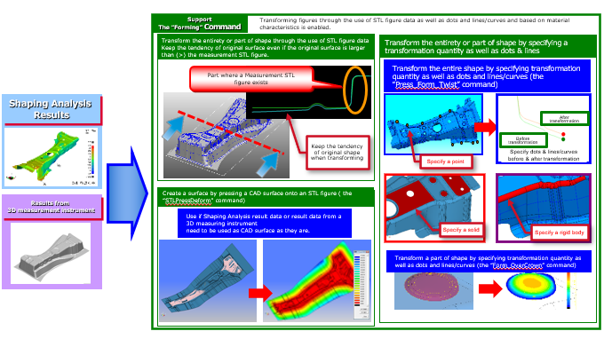 FORX-EX quickly and highly precisely models for shaping and models by executing the “Forming” command on the basis of material characteristics data and STL figure data. FORM-EX helps users to shorten delivery durations.