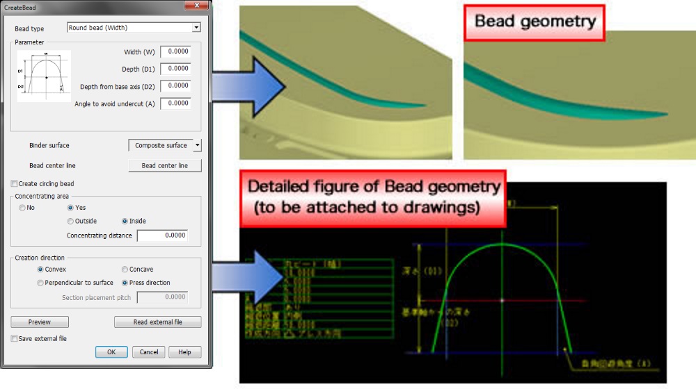 This command enables a simultaneous creation of Bead geometry and detailed figures thereof through simple operations. The detailed figures will be attached to drawings