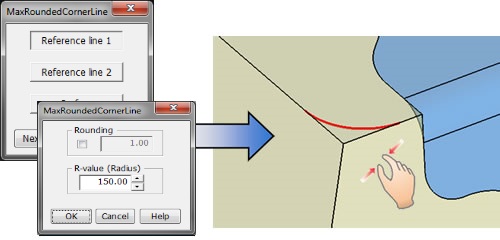 This command enables a creation of a curve that indicates a maximum of R for fillet processing. The curve can be created through intuitive operations of input.